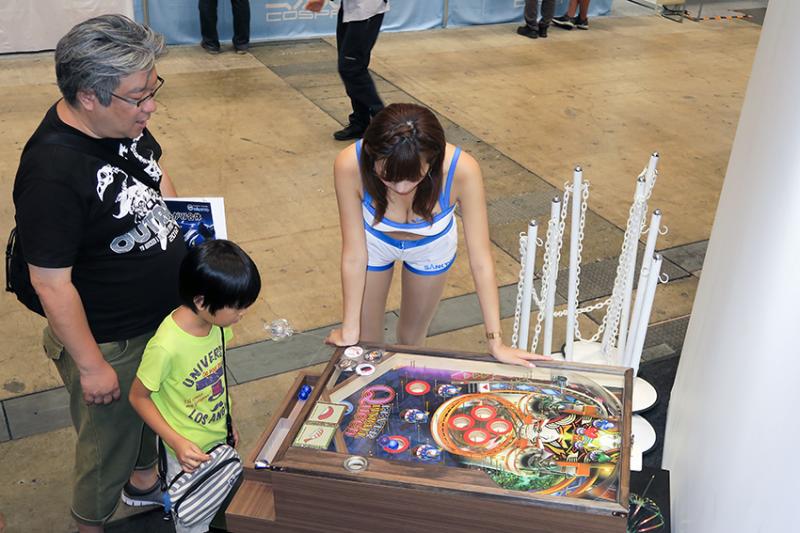 人気コンテンツとのタイアップだけに、来場者の多くがブース内を撮影している様子が見られたほか、パチンコノンユーザーも歴代遊技機に関心を示していた。
