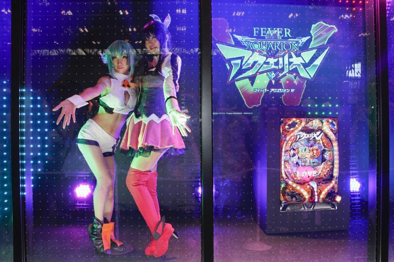 SANKYOブースでは、ホールで絶賛稼働中の最新機種『CRフィーバーアクエリオンW』の試打コーナーや、歴代アクエリオンシリーズのパチンコ・パチスロ機の展示、SANKYOがプロデュースするコンテンツの紹介、人気コスプレイヤーによるアクエリオンのショーなどアクエリオンの世界観を体現するさまざまな催しを開催した。