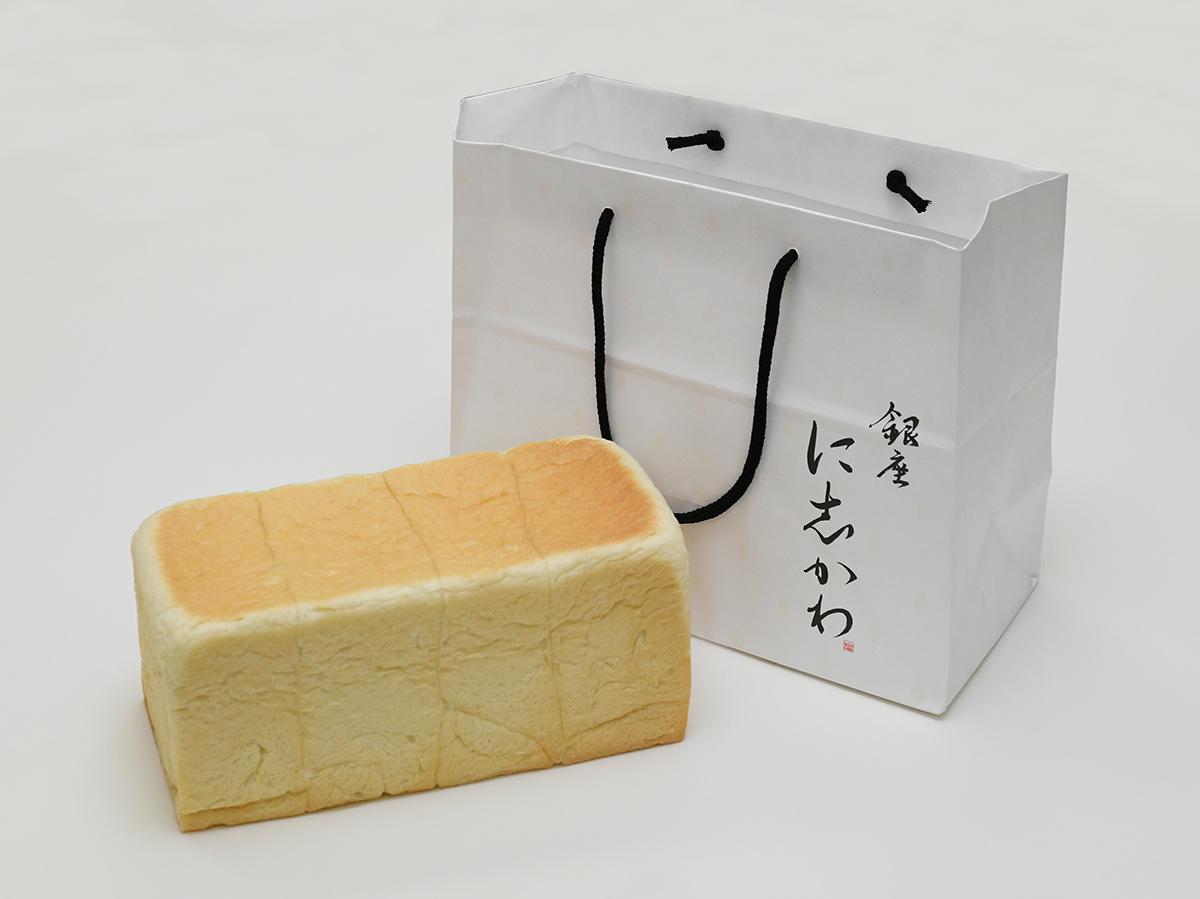 通常の食パンと比べ、甘く、柔らかいのが特徴だ。紙袋は銀座らしい高級感あるデザインで、手土産などにも重宝される。