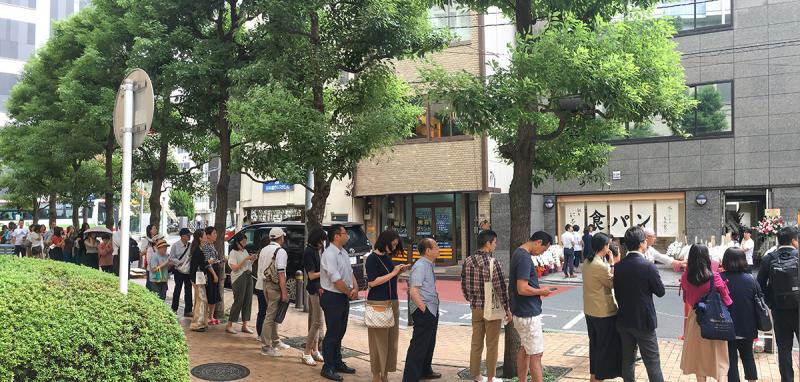13日のオープンには、店先に40人ほどの長蛇の列ができた。来店客の中には、地方から『銀座 に志かわ』の食パンを買うために銀座まで来た人がいるなど注目の高さが伺えた。