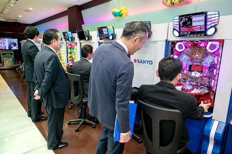 三洋は10月15日、都内ショールームでサンスリー製の新機種『CRクジラッキー YCA』の内覧会を開催。アナログと1種2種のハイブリッドスペックに注目が集まった。