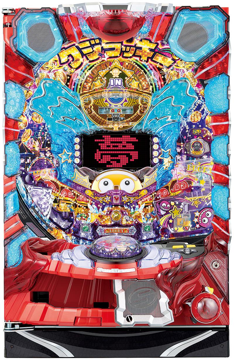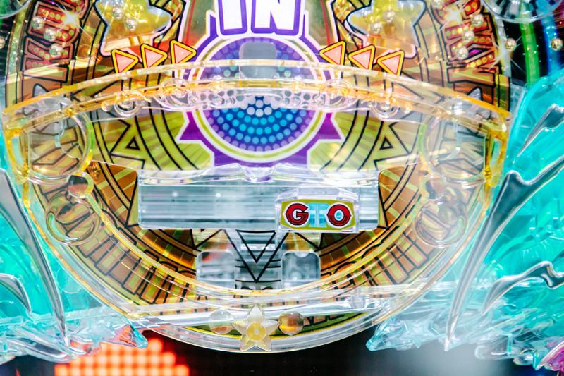 本機は「役物」と「ヘソ」2種類の大当たり契機を搭載。メイン契機の役物抽選ルートは盤面上部の「IN」を狙う。役物をクリアして「GO」に玉が入れば、RUSH突入を決めるクジラッキールーレットに。約1/4.4でVに止まれば「クジ夢RUSH」に突入する。