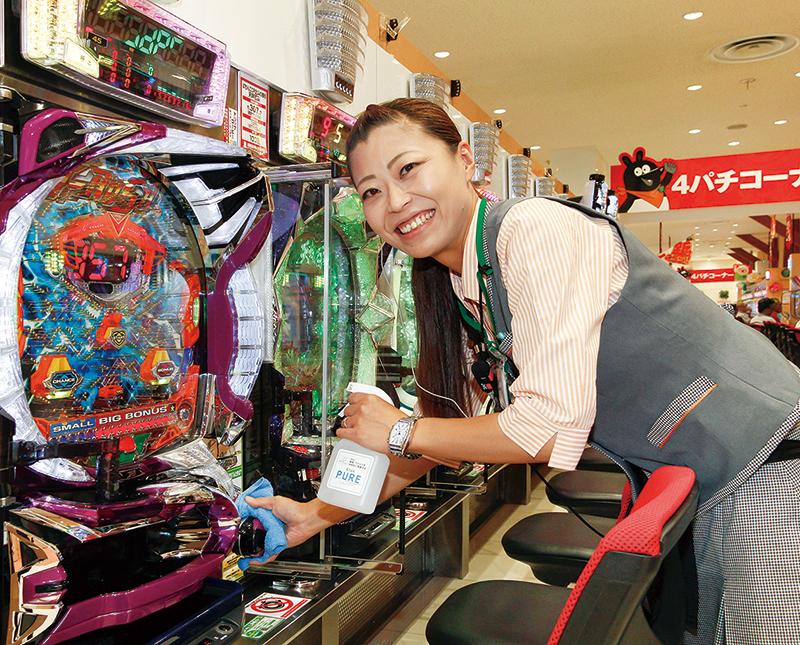 愛知県稲沢市にある『夢屋祖父江店』は、「お客様に清潔な環境で快適に遊技して欲しい」との願いから、『Etak PURE』(イータックピュア)を導入した。見えないところの気配りが、女性のリピーターづくりにも貢献しているという。