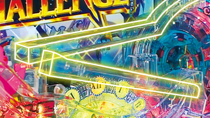 図柄揃い大当たり確率は約1/319。図柄揃い大当たり後は、時短77回 or 40回 or 20回のチャンスタイムに突入。チャンスタイム中の大当たり獲得で、実質15R+時短77回の「Challenge RUSH モード」が得られる。