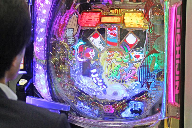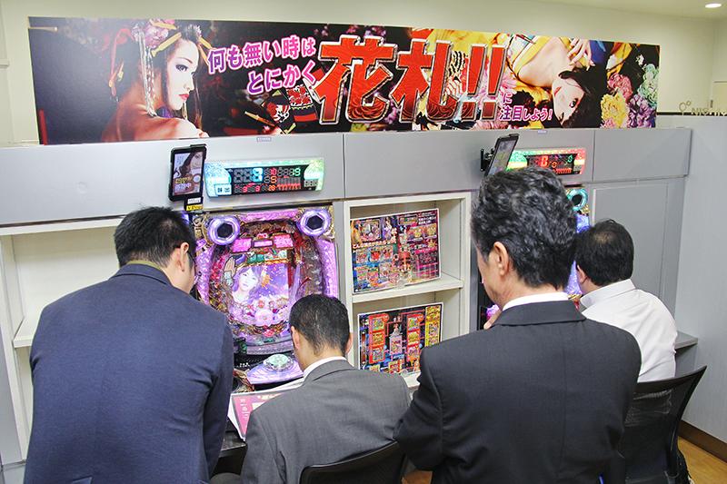 花魁シリーズで初のV確ループを採用した同機は、6段階の設定が付いたライトミドルタイプ。会場を訪れた多くのホール関係者が、艶やかな花魁や和テイストの花札を堪能した。