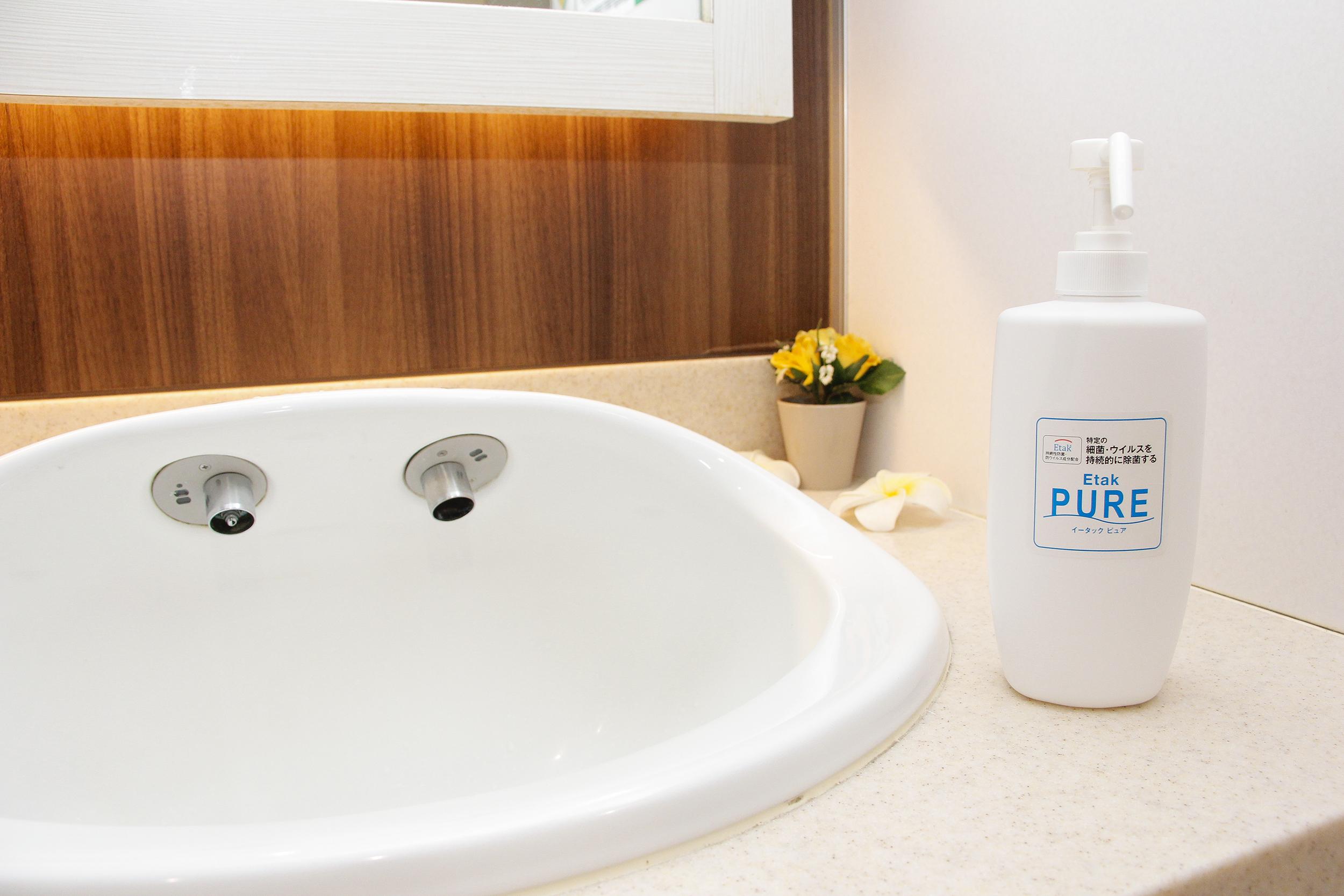 同製品は、官庁や病院、学校、銀行などが導入。除菌剤としてだけでなく、白衣やタオル、マスクなどの防菌対策でも利用されている。スタッフの健康対策にもなり、ホールの必需品として活躍する 。