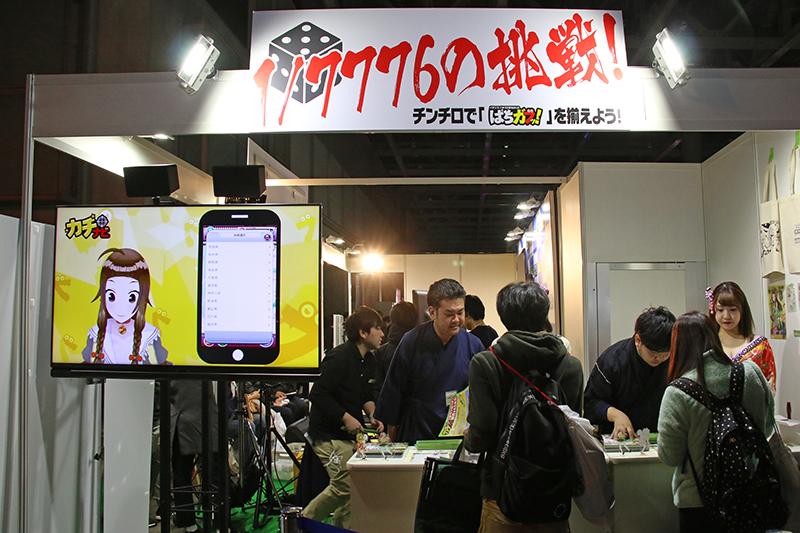 サミーネットワークスの『ぱちガブッ!』ブースでは、マイスロの遊技データを元に「マーカー」を地図上に表示し、盛り上がっている地域を探すことができるサービス「カチナビ」のアプリをダウンロードすると、限定グッズがもらえるコーナーに多くの参加者が訪れていた。