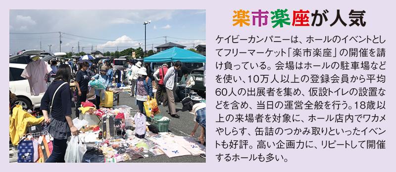 ケイビーカンパニーでは、ホールの駐車場などで開催するフリーマーケット『楽市楽座』の事業を展開している。ホールAが2万部入れた新聞折込チラシを見て来場した人は数人。一方、ホールBでSMS広告を3000人の登録会員に送ったところ、約100人が来場したことがわかった。