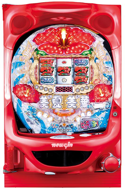 盤面には、前作よりもさらに大きくなったハイビスカスが合計3つ。また、右打ち中、美夏美華シャッターが開きシーサーが出現、玉を飲み込み顔色が変わればチャンス、さらに隠れハイビスカスが光ればビカRUSH濃厚という「シーサーアタッカー」も搭載した。