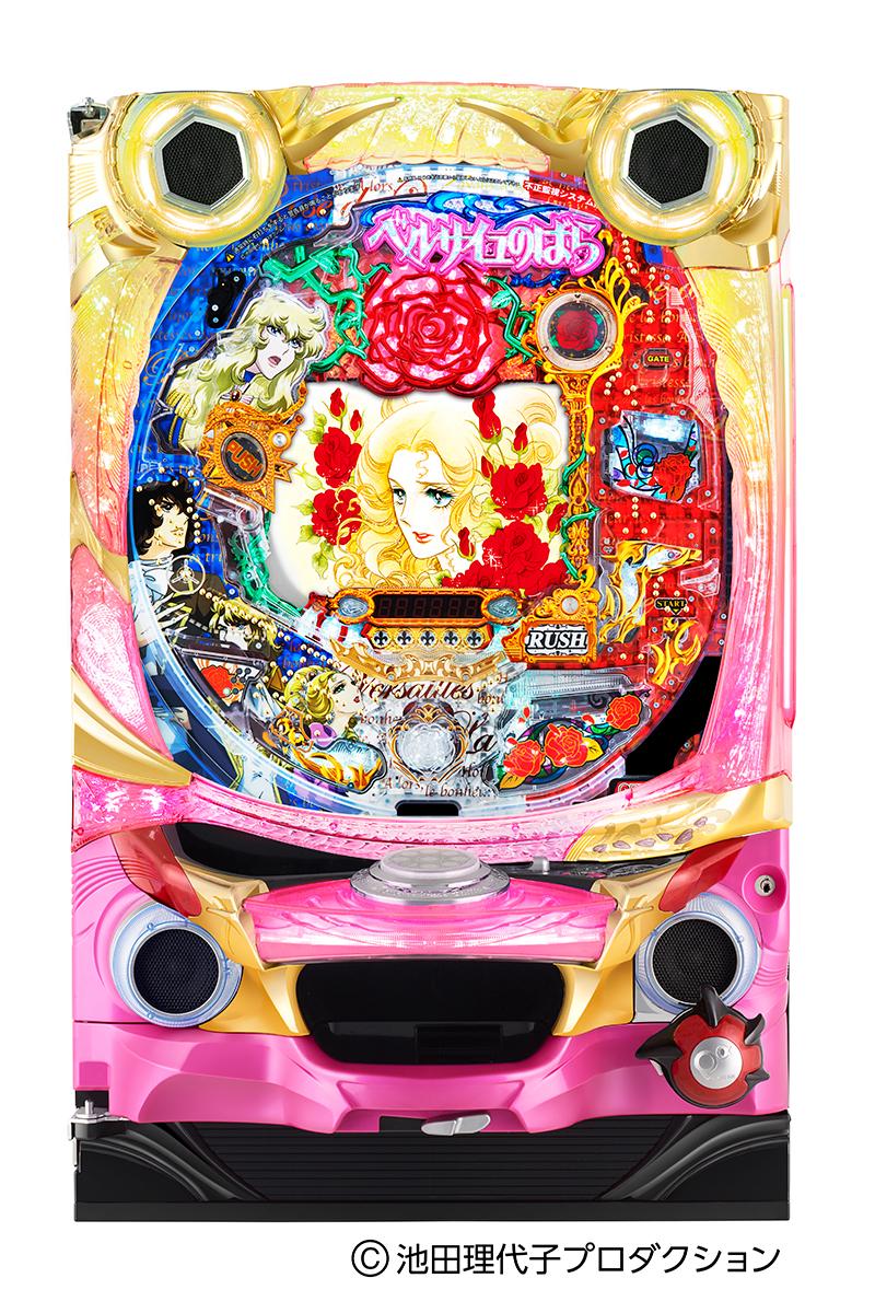 また、3段階設定付きの『Pベルサイユのばら 革命への序曲MA』も発表。同機の大当たり確率は1/169.78(設定1)~1/158.30(設定6)で、確変割合は50%。ヘソ大当たりの12%および右始動口&電チュー大当たりの50%で、同ラッシュに突入する。