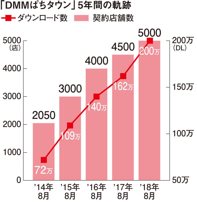 ファン向け情報サービス『DMMぱちタウン』は、2013年夏にサービスを開始。5年半で、有料掲載ホールは5000店舗を超え、現在でも年500店舗のペースで増え続けている。最大の理由は、多くのファンに支持されているため、ホールにとって本当に役立つ情報伝達ツールになっているからだ。『DMMぱちタウンアプリ』のダウンロード数が業界№1の208万、MAU※が200万人を超えた人気コンテンツの魅力をDMM.comの岡崎翼事業本部長に伺った。