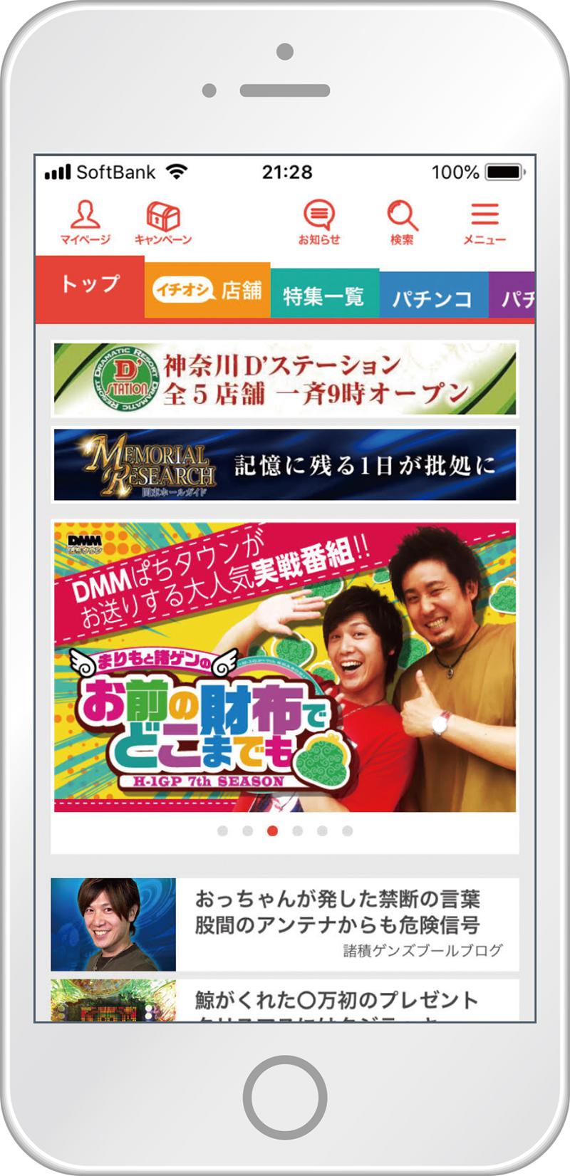 『DMMぱちタウン』はWebでも見ることができるが、サービス開始当初からスマートフォン用のアプリを中心にシェアを広げていく戦略をとった。立ち上げるための予算は約20億円。ホールからファンに情報伝達をするために完成度の高いプラットフォームを構築しようという、従来とはまったく違う発想を実現するための金額だ。