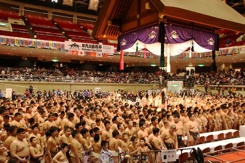 第九回白鵬杯~世界少年相撲大会~が2月11日、東京・両国国技館で開催され、日本全国から集まった小中学生に加えて、アメリカ、香港、中国、韓国、台湾、モンゴル、タイの世界8カ国から全154チーム、1194人の選手が参加。昨年の最多出場人数を今年も更新した。大会には今年もSANKYOが特別協賛した。