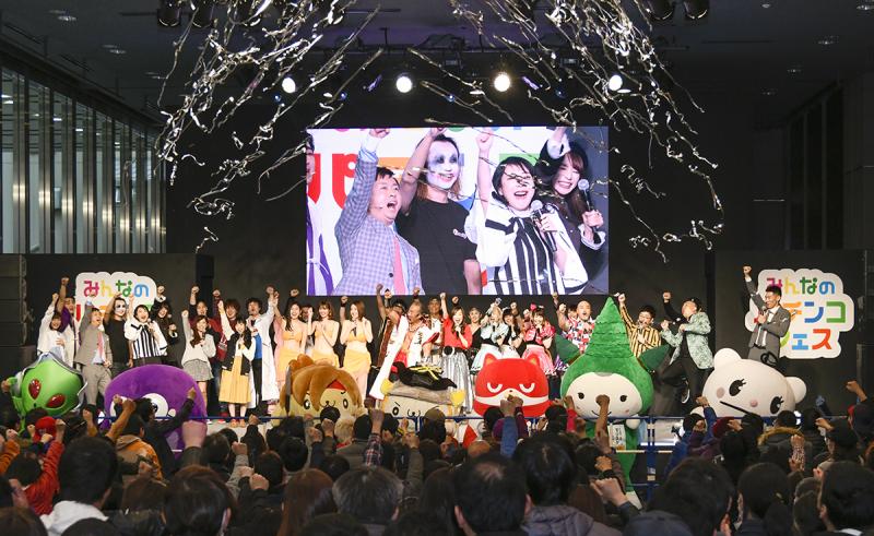 1階のイベントステージでは、お笑い芸人や人気パチンコライターによる企画が盛りだくさん。パチキャラコスプレコンテストやパチソンライブなどの企画に声援が飛んだ。