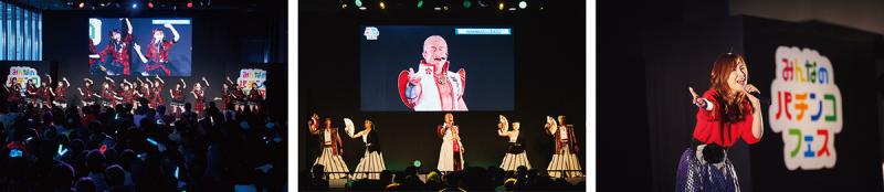 初日のステージにはAKB48が登場。2日目のフィナーレを飾ったパチソンライブでは、「花の慶次」シリーズでおなじみの角田信朗さん、「機動戦士Ζガンダム」の主題歌を歌う森口博子さんが登場。ファン垂涎の名曲を熱唱し、会場を盛り上げた。
