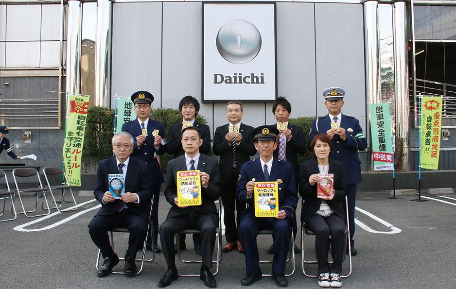 3月18日に大一商事が経営する中村区の『大一岩塚店』で、中村警察署の西川幸伸署長や同生活安全課の粕谷哲司課長らが出席して啓発品の贈呈式が行われ、その後、防犯協議会と安全協会の人たちと大一商事の社員が地下鉄岩塚駅周辺及び区内のスーパーなどでステッカーとワイヤー錠の配布など啓発活動を行った。
