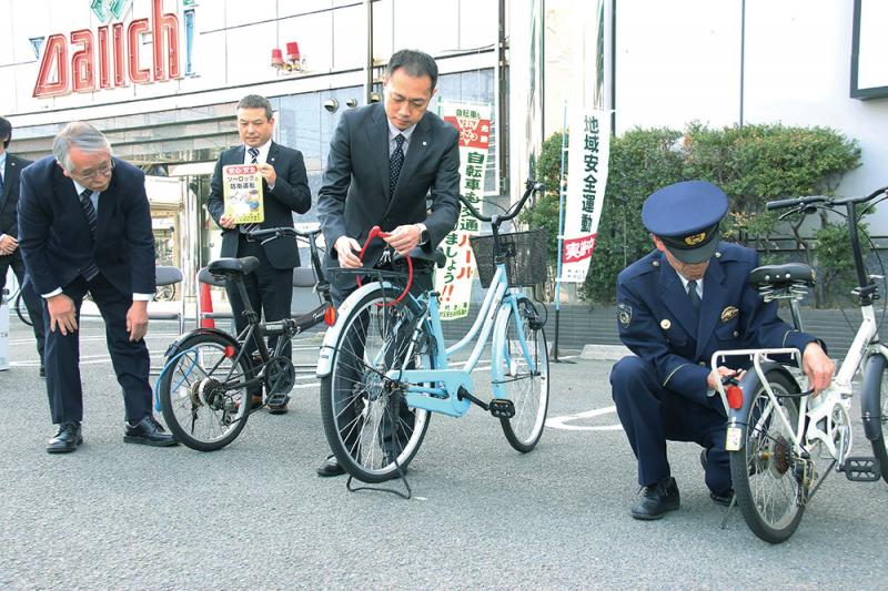 同社では2016年1月、「安全ロック作戦キャンペーン」として自転車用チェーンロックを寄贈。中村警察署と一体になって無施錠自転車への施錠や駐車場内のクルマの見回り活動を実施した。2回目となる今回は自転車の盗難防止に効果がある「ツーロック」の啓発と、反射素材ステッカーによる夜間の自転車事故防止を目的とした。