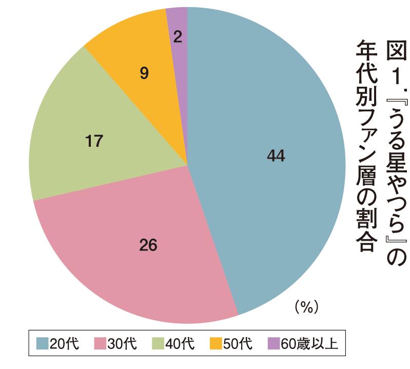 図1はアニメコンテンツの年代別ファン層の割合。『うる星やつら』には20代~30代が7割と若者層に多くのファンがいる。特に20代は、アニメの放送中(~1986年)やコミックの連載中(~87年)にはまだ生まれていなかった世代だ。