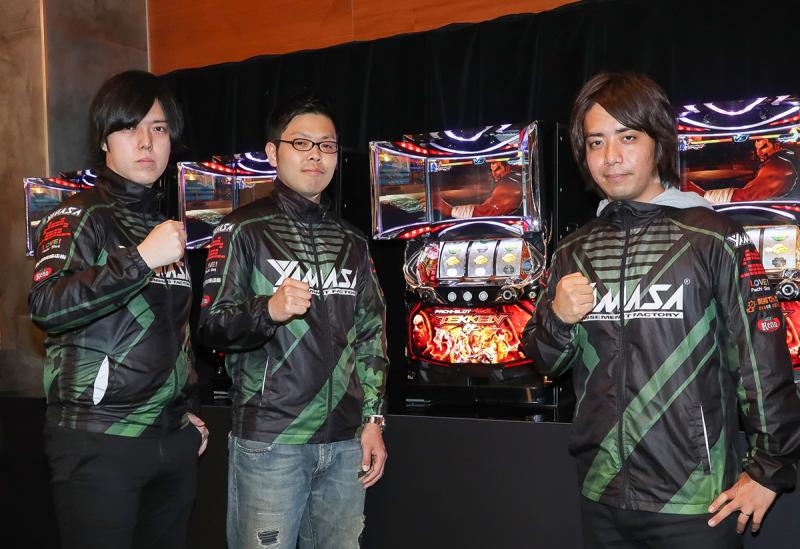 山佐は5月14日、東京都中央区のTHE BAGUS PLACEで『パチスロ鉄拳4』の新機種発表会を開催。人気コンテンツを一目見ようと、多くのプレス関係者が集まった。