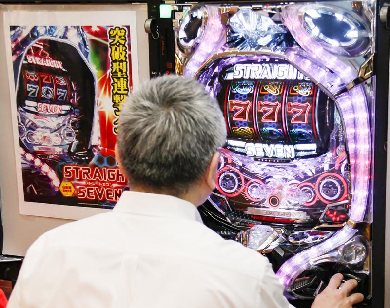 SANKYOは5月22日、都内でジェイビー製の新機種『P STRAIGHT SEVEN』のプレス試打会を開催。ジェイビーの設定付きパチンコ第1弾に注目が集まった。