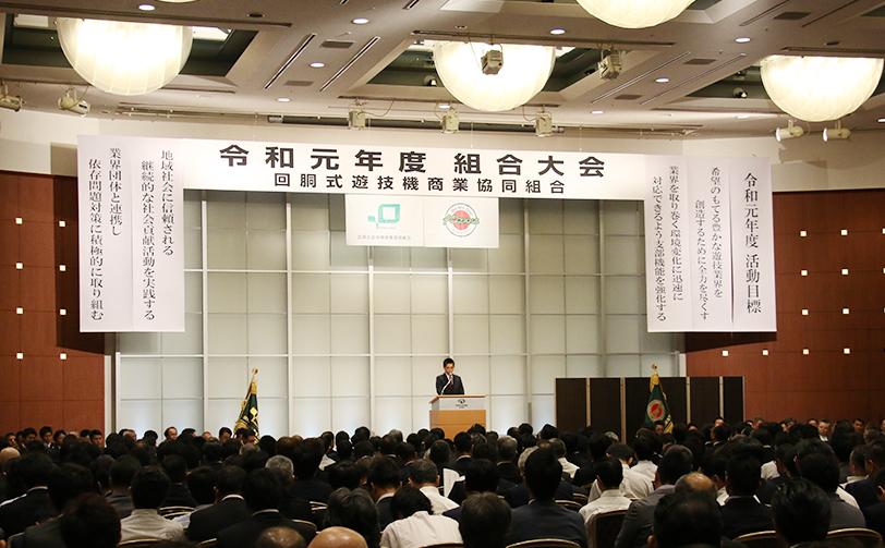 組合大会の冒頭では警察庁生活安全局保安課の小清水徹係長が山田好孝課長の講話を代読。依存問題対策をはじめとした健全化への更なる取り組みを要請した。