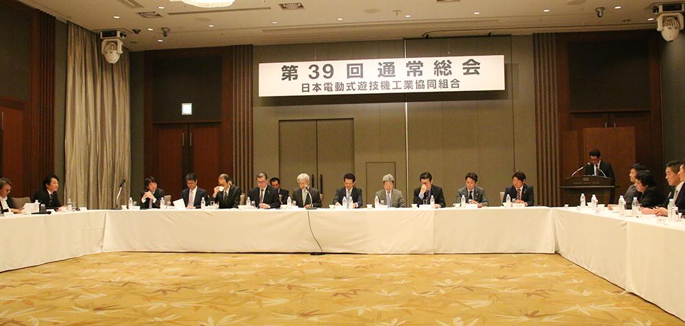 日本電動式遊技機工業協同組合は6月14日、パレスホテル東京で通常総会を開催した。本総会をもって退任する佐野慎一理事長は冒頭の挨拶で「4年間やったことに関して合格点ではないと思うが、なんとか次期理事長のもと、頑張って、希望を持って、前へ進みたい」と退任の弁を述べた。
