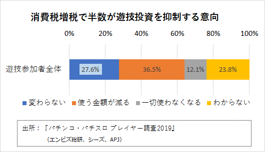第三部は、「直面する課題を生き抜くための情報戦略」と題してエンタテインメントビジネス総合研究所の藤田宏代表が講演。「パチンコ・パチスロプレイヤー調査2019」のデータをもとに、遊技への消費税増税の影響、店内禁煙化の影響を解説。「増税の影響があることを前提に対応を準備する」「増税の影響を短期間にとどめるような対策を実施する」「嫌煙離反客の呼び戻し策を実施する」などを提言。さらに新基準機時代への対応の基本方針を示した。