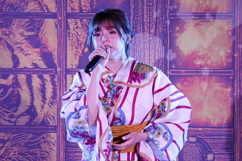 発表会には頼み人(おしの役)や楽曲で本機種に登場する、タレントの篠崎愛さんをゲストに迎えた。篠崎さんは収録されている楽曲「夜空の慕情」と「あかね雲」を披露。トークでは「撮影時に苦労したこと」について聞かれ、「着物姿で正座して頼むシーンはすごい辛かった。撮り直しもあって大変でした」と笑顔で話した。