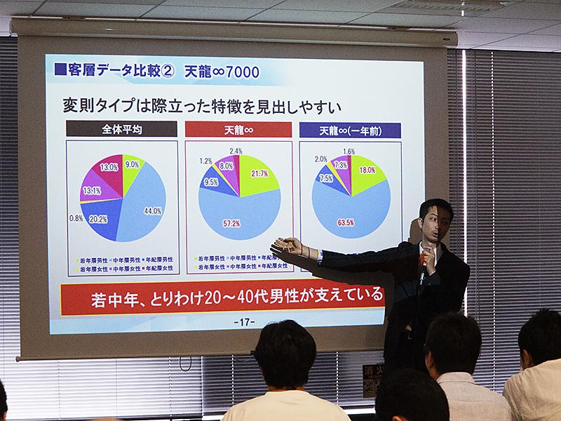 第二部では、シーズの涌井優常務取締役が、「データを見る思考をチェンジ!劇的に変わる数字の真実」と題して講演。『パチンコ・パチスロプレイヤー調査2019』の結果をもとに、表層データだけを見るのではなく、様々な切り口で深堀りしセグメントどうしを比較することの重要性を説いた。さらに「遊動分析」のデータをもとに、主要遊技機の客層の違いを提示し、今後の機械開発のターゲットプレイヤーの設定の仕方などのマーケティング戦略のフレームワークを解説した。