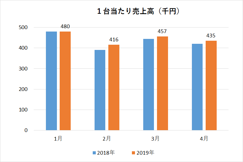 1日当たりに換算すると、遊技機1台当たりの売上高は1万5000円(29営業日で計算)で、前の月より200円少なかった。