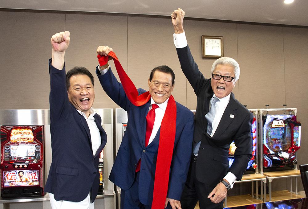 尾立氏は「アントニオ猪木先生の闘魂は、プロレスファンのみならず、パチンコ・パチスロファンにもしっかりと伝承されているんですね」と遊技産業における猪木氏の功績に頭を垂れた。