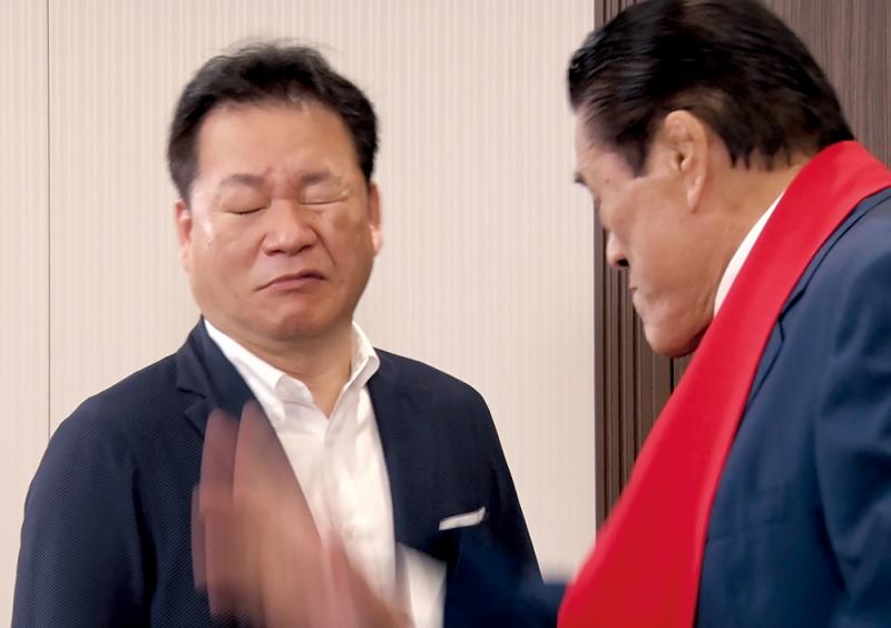尾立候補は「よくわかりました。ありがとうございます。アントニオ猪木先生の闘魂を継承させていただき、必死に遊技産業のために働かせていただきます」と決意を新たにしていた。その後、猪木氏から闘魂注入のビンタを受けた尾立氏。3人で「1、2、3、ダー!」と気勢を上げて、参院選での必勝を誓った。