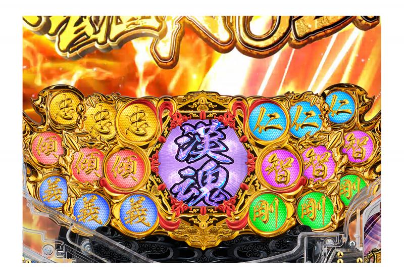 盤面下にある漢魂ランプ可動体はチャンスを見える化。漢魂が6個貯まると、「連続演出」などチャンス演出をストックする。初打ちのユーザーでもゲーム性が分かりやすく、花慶ファンには新鮮な演出となっている。