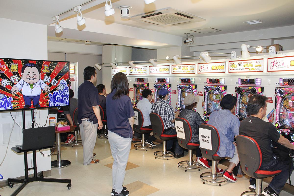 豊丸産業は8月3日、19日から導入予定の新機種『Pすしざんまい極上5700』の先行試打会を都内ショールームで開催。日工組で取り組んでいる、既存のパチンコファンに友人や家族などと一緒に来場してもらい、パチンコファンのみならず、パチンコ未経験者にもパチンコの楽しさに触れてもらう”連れパチ“企画も実施された。