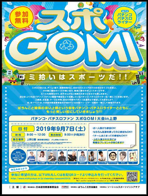 当日はファンとPAA会員企業のメディアで活躍中のパチンコ・パチスロライターがチームを組み、上野公園周辺エリアでスポGOMIを実施する。ファンは広く公募するという。