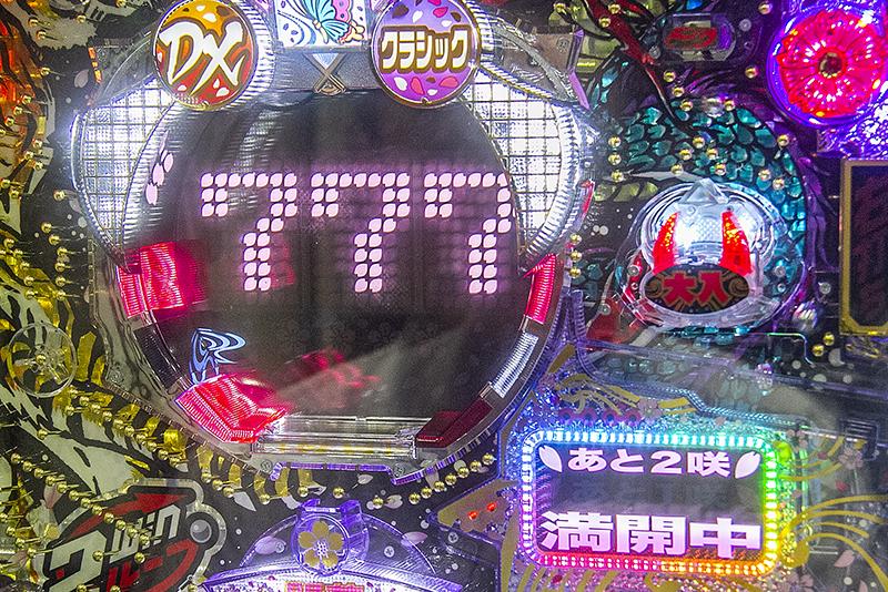 右打ち時の図柄揃い確率は1/1。次回大当たりまでの速さは現行機最高峰だ。約束された残り2回の大当たりのうち、いずれかで3または7図柄が揃えば、そこからまた2回の大当たりが続いていく。大当たりはすべて1000個を払い出す10R。初回突入で3000個が見込める計算だ。