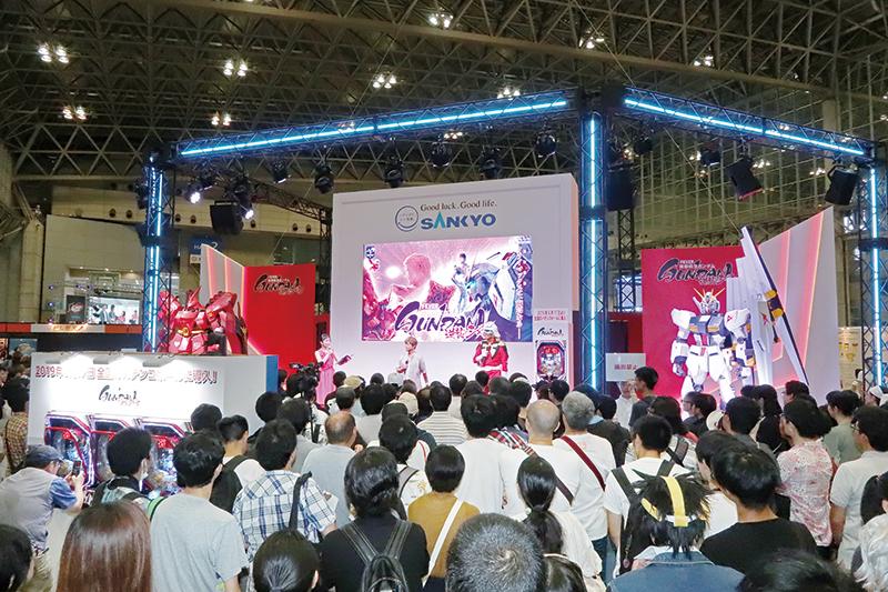 SANKYOブースでは9月17日から全国導入が始まる『フィーバー機動戦士ガンダム 逆襲のシャア』を強力にフィーチャー。パチンコライターのしおねえさんによる『フィーバー機動戦士ガンダム 逆襲のシャア』パチンコ講座を開催。さらに声優の古谷徹さんを招いて、『フィーバー機動戦士ガンダム 逆襲のシャア』発売記念スペシャルゲストトークショーも行われた。