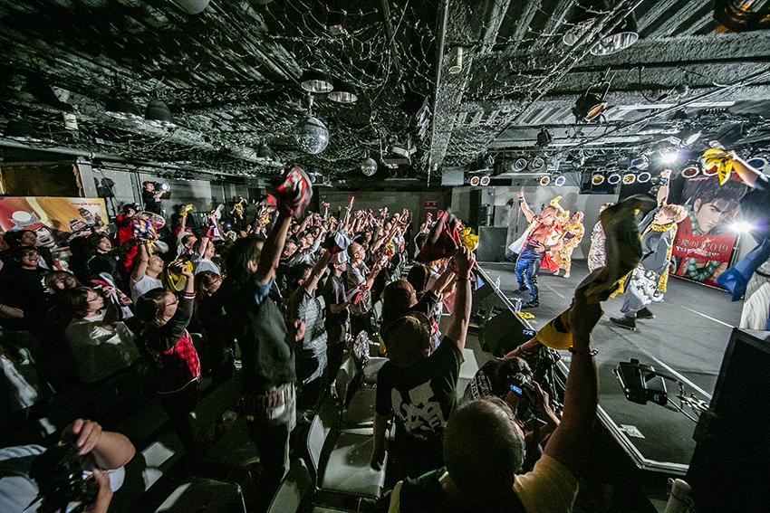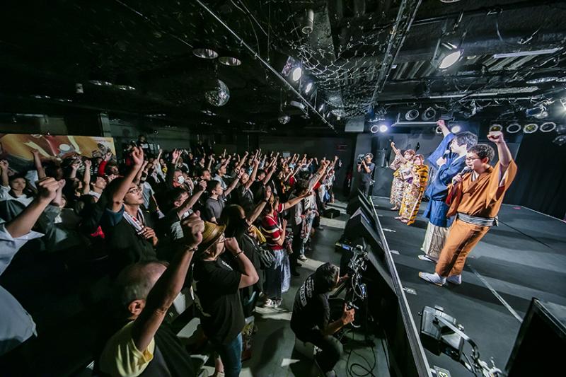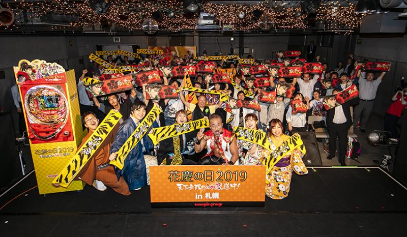 『花慶の日2019』の醍醐味は、なんといっても「CR花の慶次」の魅力に直に触れられること。過去10回、東京で開催された花慶の日とは違い、ファイナルの大阪会場以外は全国7都市の中小規模なライブハウスなどを巡る。札幌会場のライブハウス「KRAPS HALL(クラップスホール)」は、座りでキャパ120人程度。ステージと客席が近いため、来場者を巻き込んだイベント構成になっている。