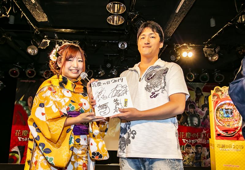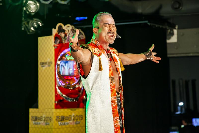 その後、ステージに角田さんが登場。想いの詰まった「傾奇者恋歌」を歌い上げたほか、長年応援し続けてくれるCR花の慶次ファンに感謝を述べた。さらに戦国ROCKの貴公子、大西洋平さんが登場して、「漢の喧嘩美しく」を披露。歌唱前にはCR花の慶次に携われる喜びと感謝を語り、今後も花慶ファンのために歌い続けることを誓った。