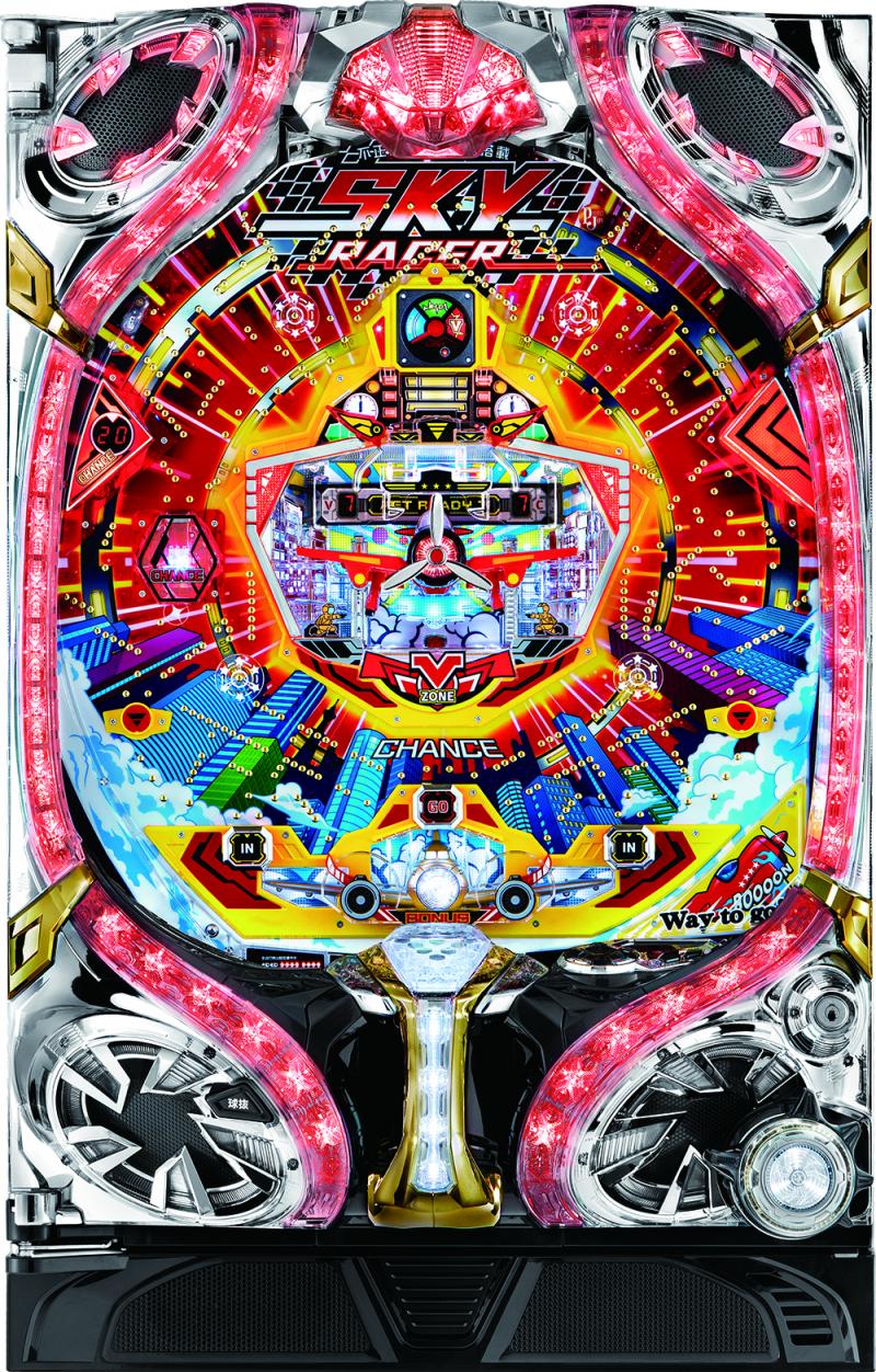 『PスカイレーサーDX』は業界初の設定付き羽根モノ。ヘソ始動口や下アタッカーの採用で、羽根モノ初心者でも気軽に遊べる設計だ。