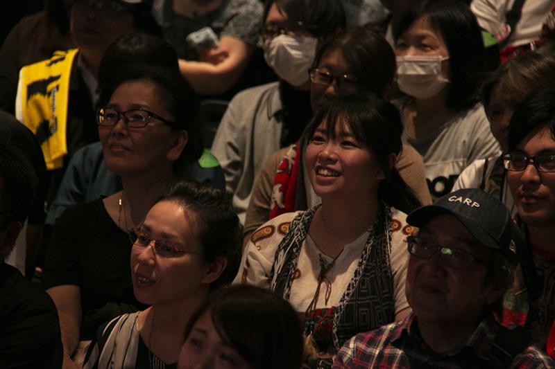 慶次のTシャツで参加した広島県内に住む男性二人組は「いやー、もうサイコ―でした!」「燃え尽きました」と大好きだという角田さんの歌を堪能。「角田さんのカッコよさに圧倒されたし、やっぱり角田さんは花の慶次ですね~」と余韻に浸り、「是非!また広島でやっていただきたい」と早くも次回に向けて胸を躍らせていた。