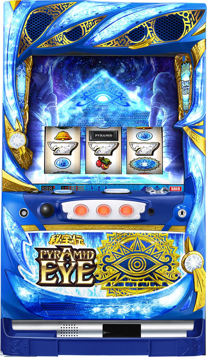 大都技研は25日、都内・本社でパチスロ新機種『PYRAMID EYE』のプレス向け試打会を開催した。