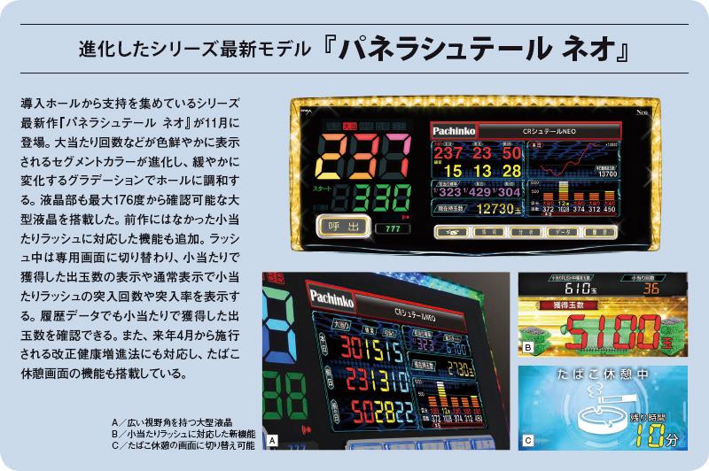 デザイン性だけではなく、表示部にも力を入れた。回転数や大当たり回数を表示する7セグの不点灯部分を見えにくくすることで、コントラストの強いくっきりとした表示部に仕上げた。サイズも遊技台と同等のワイド460㎜で、従来品よりも圧倒的に高い視認性を実現した。