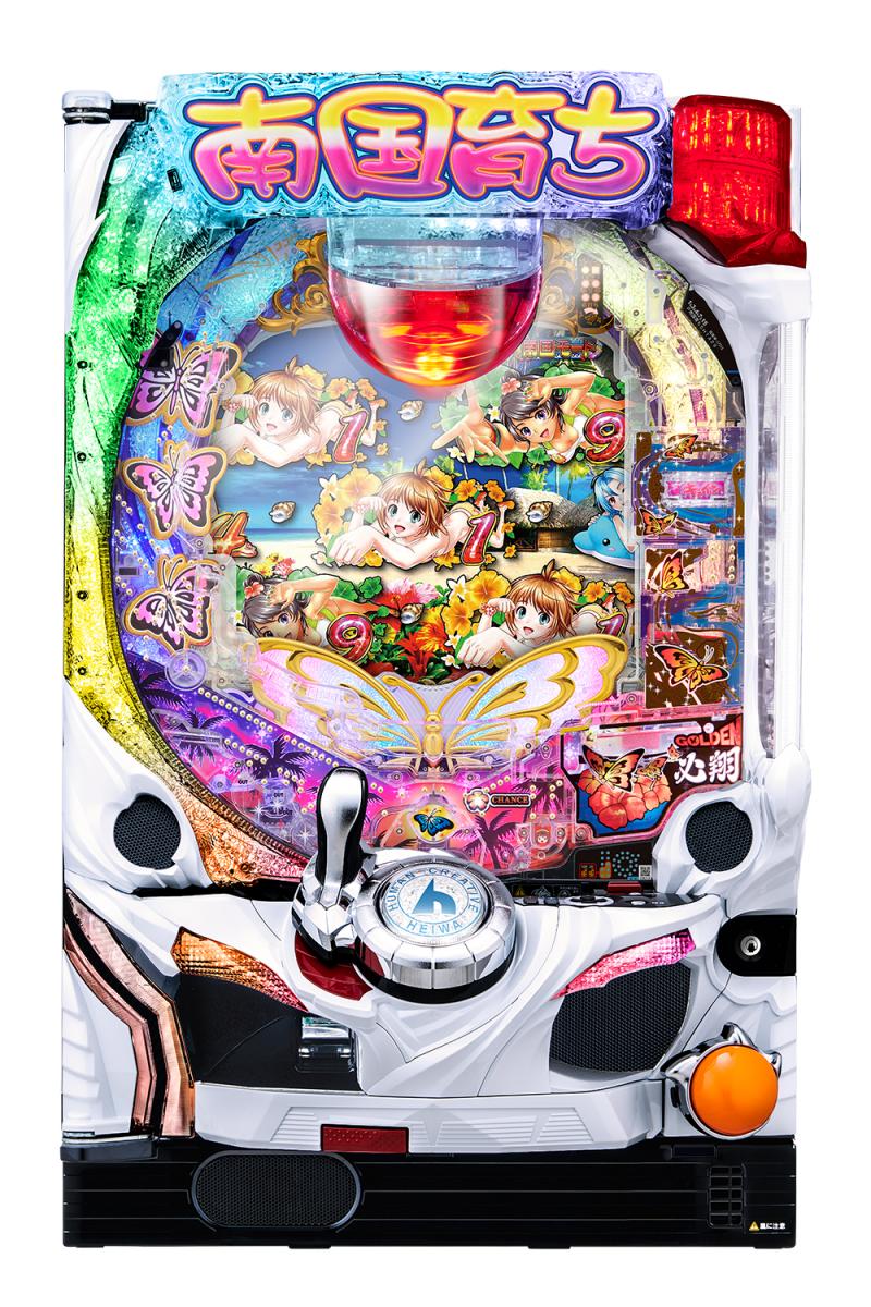 スペックは大当たり確率1/315.0、確変割合55%の確変ループタイプで、図柄揃いの大当たりは約1500個を払い出す。奇数図柄揃いの「スーパー南国ボーナス」当選で確変「必翔チャンス」に突入。金図柄揃いの「スーパー南国ボーナスゴールデン」ならば、確変+「スーパー小当たりラッシュ」(SKR)の「ゴールデン必翔チャンス」に突入だ。偶数図柄揃いでも100回の時短「チャンスタイム」が付いてくるので、引き戻しに期待できる。