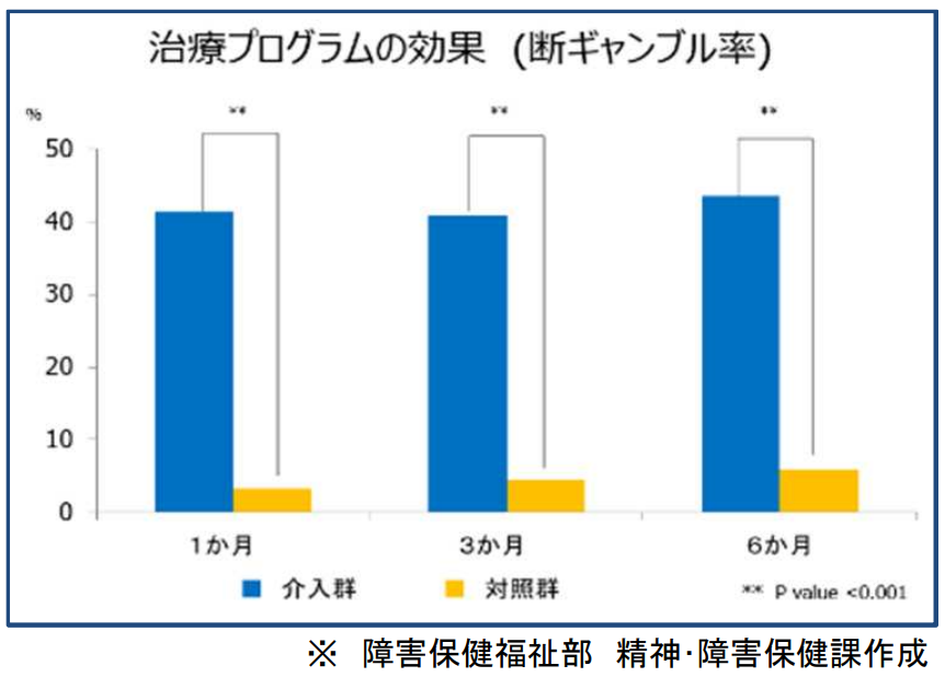 今回、次期診療報酬改定で効果的な治療方法に係る評価が新設される可能性が出てきたのは、厚労省によると、「ギャンブル依存症に対する効果的な依存症集団療法プログラムが開発され、効果が確認された」ためだ。