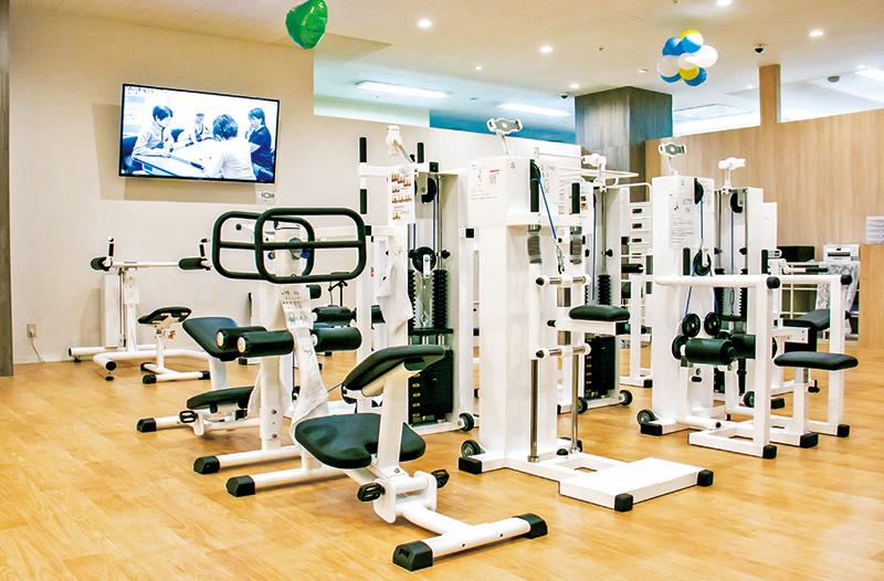フィットネスマシンは、様々な機器がある中から運動療法士のアドバイスなどを聞きながら選定。既存のフィットネスジムにあるマシンとは趣が異なり、白と黒のソフトな見栄えで、各人に合わせた負荷を適切に設定でき、高齢者でも馴染みやすい機器を導入した。