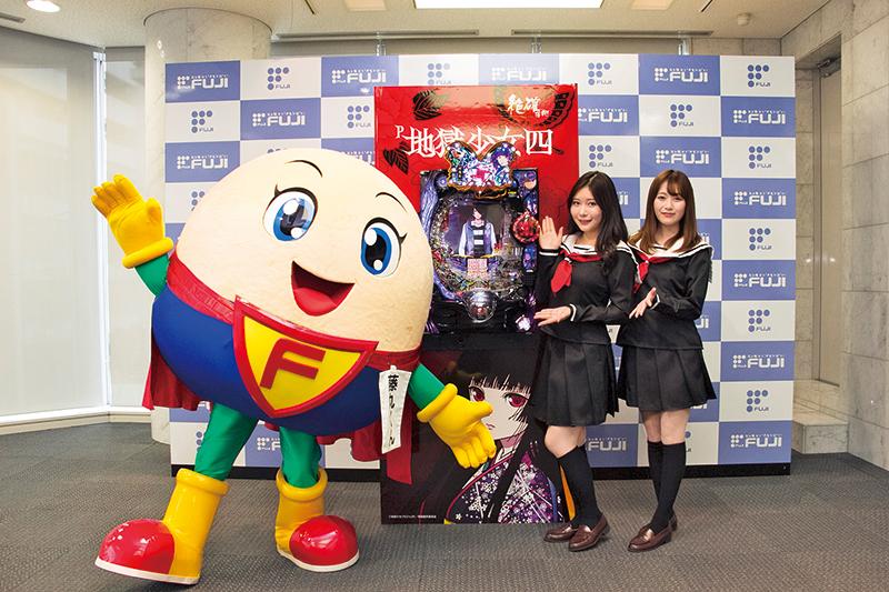 藤商事は12月26日、都内で『P地獄少女四』(JFJ製)のプレス発表会を開催した。ミドルスペックのV確ループタイプ。初当たり、ゾーン中、引き戻し時の大当たりは絶対に確変になる(!?)※1「絶確」を採用。「せっかく当たったのに単発でガッカリ」ということのない斬新なシステムにメディア関係者の注目が集まった。