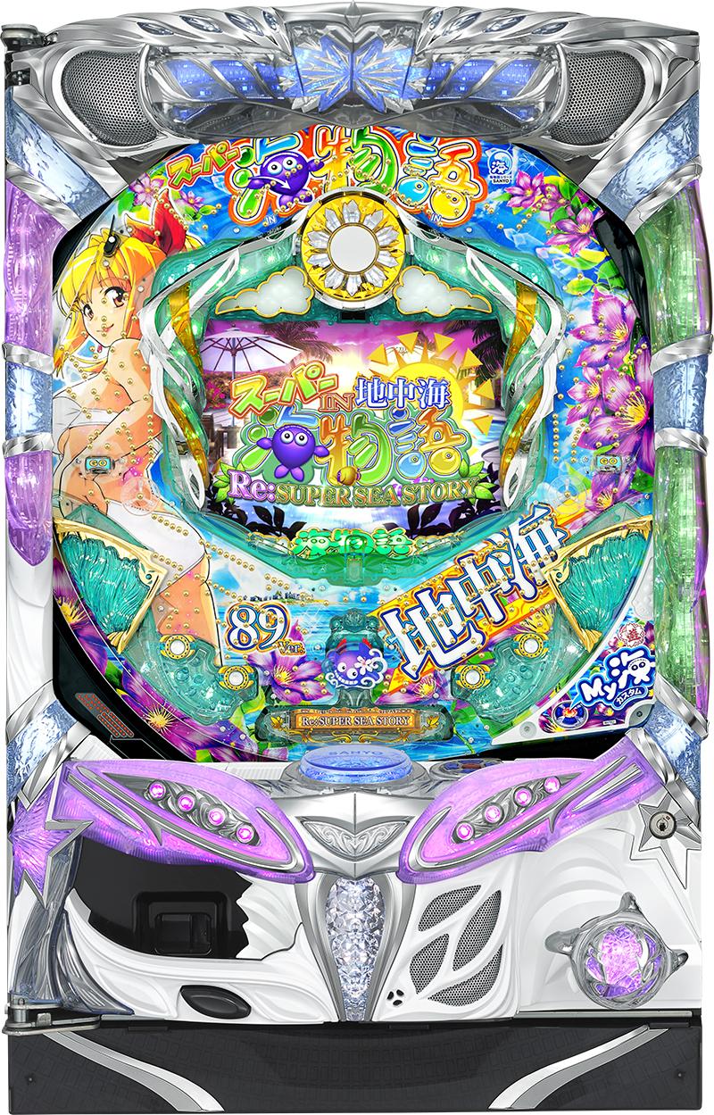 スペックは大当たり確率が約1/89.8で、ST突入率は100%(20回)。初回の電サポ20回+残保留4個を突破することで、「地中海チャンス」(ST20回+時短80回)に突入する。突入率は約49.8%、継続期待値は約78%。