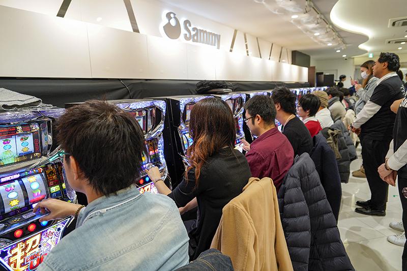 サミーは1月18日、東京支店ショールームで第一回P‐SPORTS「超ディスクアッパー選手権」の東京予選を開催。約500人のファンが大会専用機『超ディスクアップ』で、ビタ押しのスピードや精度を競い合った。