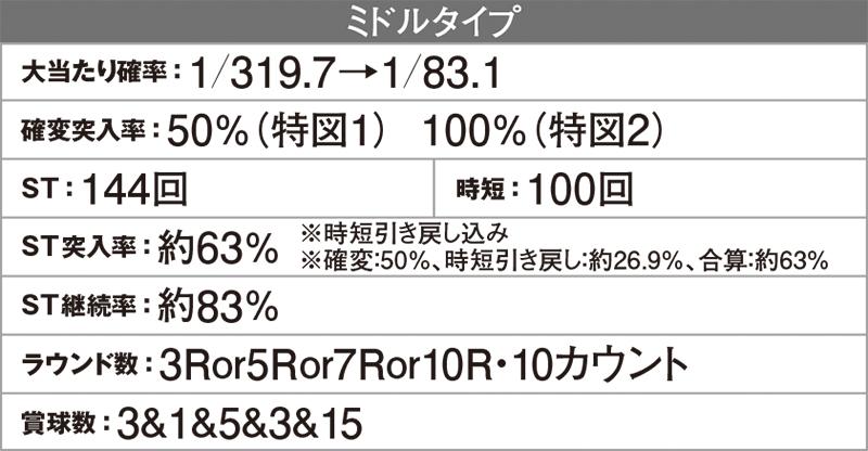 スペックは大当たり確率1/319のV‐STタイプ。144回のST「神RUSH」は継続率約83%で、RUSH中の80%が出玉1500個の振り分け。短時間勝負も可能な出玉性能の高さが特長のひとつになっている。